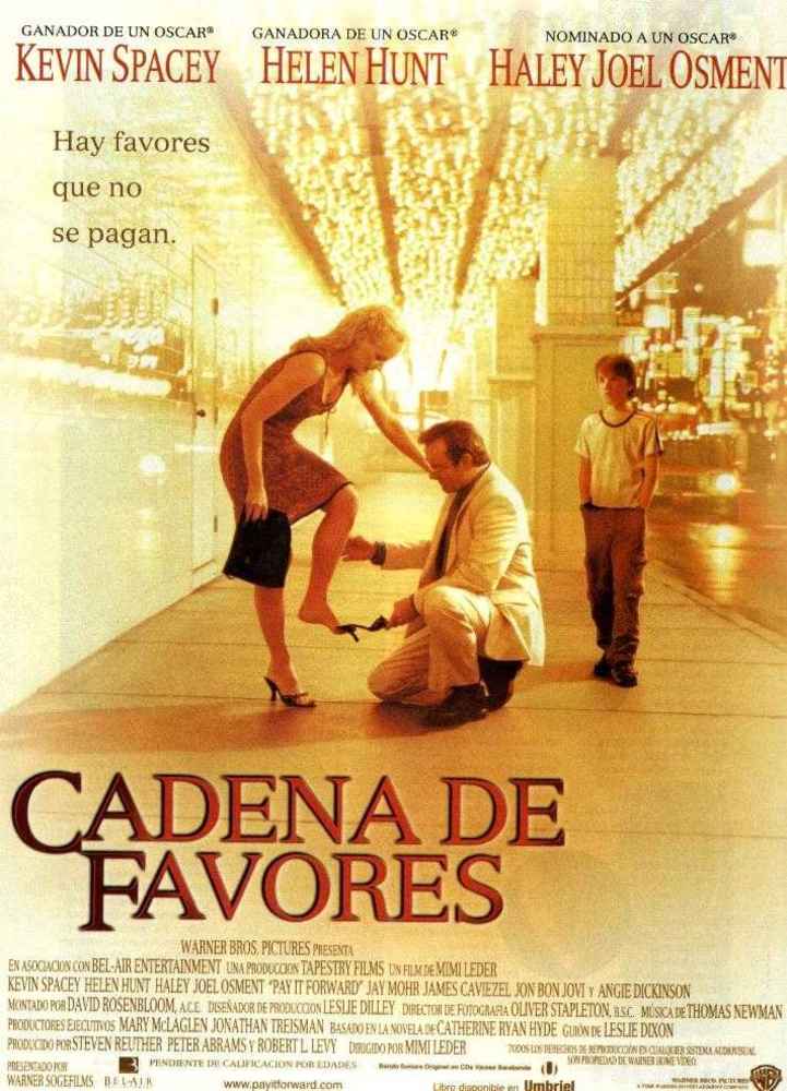 Un niño imagina un curioso sistema para mejorar el mundo; hacer favores incluso antes de que te los devuelvan. Es decir: no devolver favores, sino pagarlos por adelantado, y no necesariamente a quien te lo hizo a ti. Para sorpresa de todos, la desinteresada propuesta causa furor entre la gente. Entretenida comedia con toques dramáticos y un eficaz reparto. Como anécdota el personaje interpretado por Spacey es, en la novela, de raza negra, lo que provocó polémica en USA entre el colectivo afroamericano.