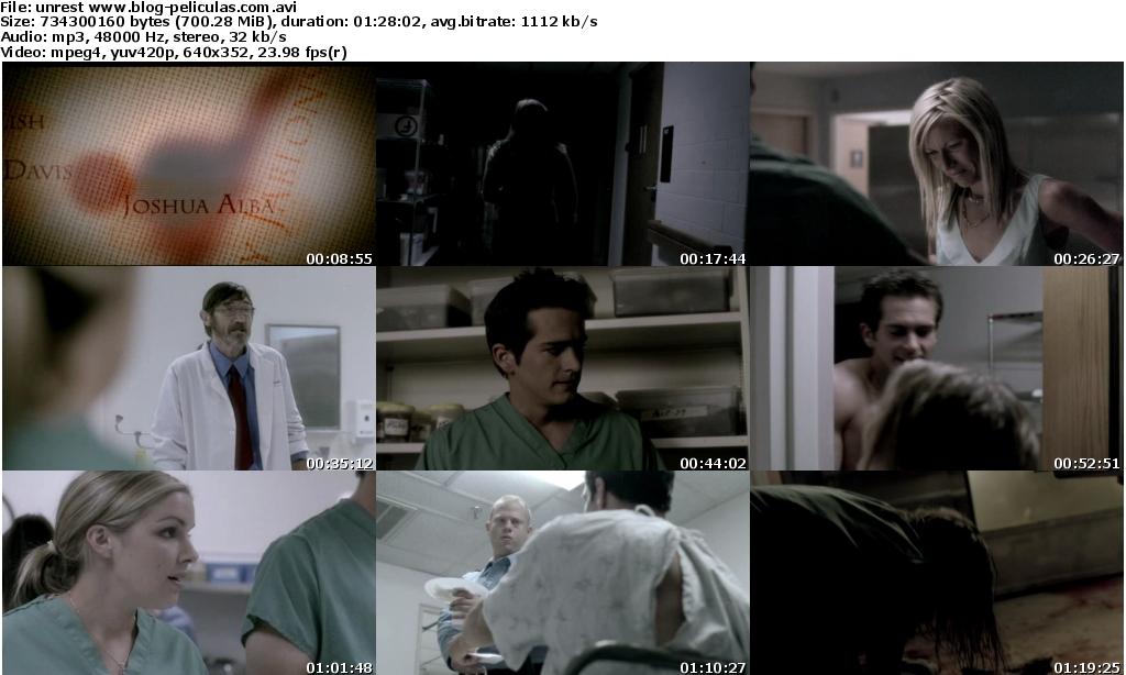 Descargar Unrest Latino – Mientras trabajan en un laboratorio con restos humanos, cuatro estudiantes de medicina no son conscientes de que están sobrepasando sus propios límites. Las disecciones y experimentos están llevándolos al filo de su estabilidad emocional. Uno de ellos comienza a ver imágenes de los cuerpos muertos. Y mientras se esfuerzan por mantener la ciencia a un nivel más superior que su propia cordura, comenten errores… y uno tras otro, los estudiantes comienzan a desaparecer…